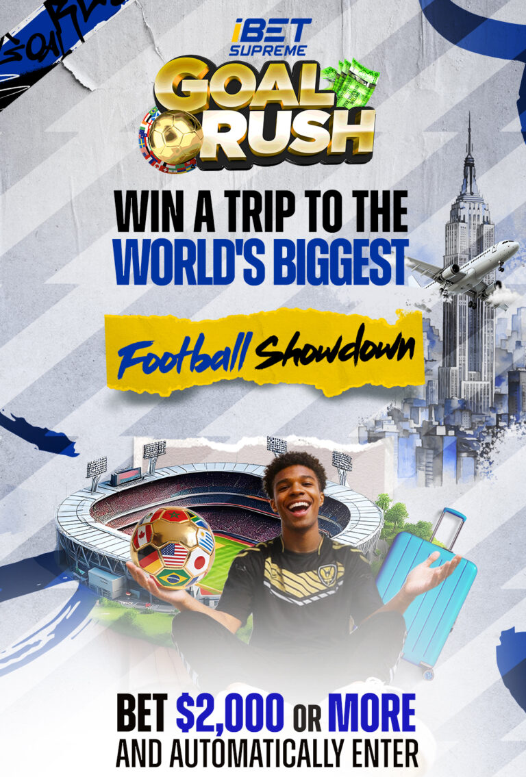 Goal Rush 2026 is a four-month sports betting promotion from iBet Supreme, timed to the world’s biggest international football tournament this summer. One lucky player will win an all-expense-paid VIP trip for two to attend a live Round of 16 match at MetLife Stadium in New York on July 5, 2026. Weekly prizes are also up for grabs throughout the promotion period.